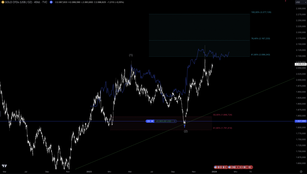 Hier sehen Sie meine Gold-Prognose aus dem Jahr 2023, die bereits ein Jahr im Voraus erstellt wurde.